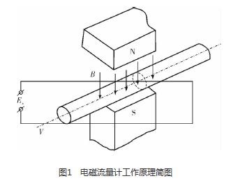 堿液計(jì)量表是利用法拉*電磁感應(yīng)定律設(shè)計(jì)的流量測量儀表,用于測量導(dǎo)電液體的體積流量。根據(jù)法拉*電磁感應(yīng)定律,當(dāng)導(dǎo)體切割磁力線運(yùn)動時(shí),導(dǎo)體內(nèi)將產(chǎn)生感應(yīng)電動勢Ex(圖1),方向根據(jù)右手定則確定,感應(yīng)電動勢Ex的大小與磁場的磁感應(yīng)強(qiáng)度B、傳感器管道的內(nèi)徑D和流過導(dǎo)電液體的流速V成正比,B、D、V三者相互垂直,即Ex=BDV。