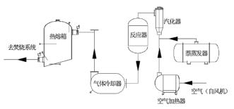 以原料萘為例。萘由原料儲罐經(jīng)液萘泵加壓后進入萘蒸發(fā)器,液萘在萘蒸發(fā)器內(nèi)由中壓蒸汽加熱汽化分離,經(jīng)流量調(diào)節(jié)閥、流量計和氣萘切斷閥后進入汽化器;空氣經(jīng)風機加壓后,經(jīng)空氣加熱器加熱后進入汽化器,氣萘和空氣在汽化器內(nèi)混合均勻后進入氧化反應器上部,經(jīng)催化床層發(fā)生氧化反應生成苯酐和少量的副產(chǎn)物(以順酐、苯甲酸、萘醌、和鄰苯二甲酰亞胺為主);反應氣體經(jīng)液體渦街流量計冷卻后再進入切換冷凝器進行凝華捕集,少量未被捕集的有機物和不凝氣體經(jīng)尾氣管路進入蓄熱焚燒裝置焚燒處理,焚燒后的尾氣達標排放。