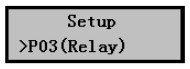 1) 在儀表正常工作時(shí)按擊Mode鍵進(jìn)入?yún)?shù)設(shè)置菜單后按擊▼鍵選擇到P03(Relay)繼電器設(shè)置菜單,如右圖所示。