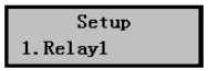 2) 按擊OK鍵,進(jìn)入繼電器1設(shè)置菜單,如右圖所示。