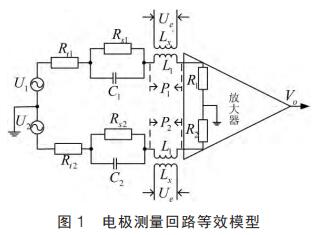 提出在硬件電路上加入模擬開關(guān), 干擾尖峰到來時(shí)斷開模擬開關(guān)避免干擾進(jìn)入后級電路,尖峰過去重新打開模擬開關(guān);K.Saito 等提出漂移校正法,先以高勵(lì)磁頻率進(jìn)行勵(lì)磁,在勵(lì)磁過程中插入低勵(lì)磁頻率提取用于漂移校正的非固定微分噪聲分量,但在插入的低勵(lì)磁頻率段漿液噪聲較大且很難將漿液噪聲與流量信號分離,此時(shí)的校正因子非單純的非固定噪聲分量,改進(jìn)措施是長時(shí)間取平均值得到穩(wěn)定因子。 傳統(tǒng)方法是同步采樣保持法,即在磁場穩(wěn)定階段采樣。 其他消除干擾的方法有設(shè)置干擾補(bǔ)償機(jī)構(gòu)、控制勵(lì)磁電流變化率減小干擾幅值、矩形波代替梯形波、希爾伯特黃變換結(jié)合傅里葉變換和程控增益技術(shù)等。經(jīng)上述對現(xiàn)有的文獻(xiàn)分析與總結(jié)可知, 當(dāng)前消除微分噪聲主要從信號處理方面入手,并未對影響噪聲的因素加以研究。 本文建立電極測量回路等效模型,給出仿真模型搭建、參數(shù)取值和仿真結(jié)果分析。