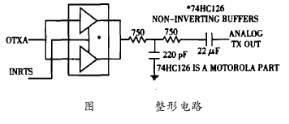 如圖4所示,緩沖器74HC126的作用是使方波的上升沿和下降沿趨于平緩,使信號滿足HART物理層規(guī)范所要求的信號波形上升沿和下沿的時要求,因為較平緩的上升沿和下降沿時間可以降低與其它網(wǎng)絡間的串擾。