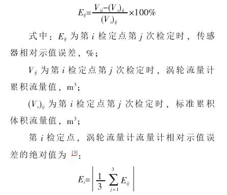 實(shí)驗(yàn)中每個流量點(diǎn)均進(jìn)行3次測量,(j=1,2,3),3次測量的平均儀表系數(shù)作為此流量點(diǎn)的儀表系數(shù)Ki(i=1,2,3,4,5),各流量點(diǎn)儀表系數(shù)*小值與*大值的平均值,作為傳感器的儀表系數(shù)。