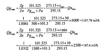 已知介質(zhì)的*低壓力、*高溫度和所需的*大標準狀況下的流量,計算*大工況下的流量: