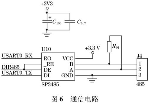 防腐型電磁流量計輸出的流量值可以通過外接的 TFTLCD 屏直接顯示,還可以通過預(yù)留的 RS485 通信接口將數(shù)據(jù)發(fā)送到上位機(jī)中。RS485 電路*大的優(yōu)點(diǎn)是 485 電平與 TTL 電平兼容,方便與 TTL 電路相連;抗共模干擾能力強(qiáng);數(shù)據(jù)傳輸速度快,高達(dá) 10 Mbps;通信距離遠(yuǎn),*大為 1.2 km。系統(tǒng)采用 SP3485 芯片進(jìn)行數(shù)據(jù)通信,SP3485 是一款低功耗芯片且符合RS485 協(xié)議的收發(fā)器,電路圖如圖 6 所示。