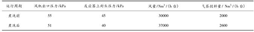 煤氣流量計(jì)煮洗吹掃后,裝置運(yùn)行期間無燃爆事故,且裝置運(yùn)行的風(fēng)量明顯提高,系統(tǒng)阻力明顯降低,投料量增加。現(xiàn)將煮洗前后的運(yùn)行數(shù)據(jù)對比如下: