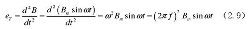 從上圖 2.5 中可以觀察到兩個(gè)電極、勵(lì)磁線圈、轉(zhuǎn)換器內(nèi)阻之間形成了一個(gè)閉合回路,將此回路稱(chēng)之為初級(jí)繞組,從理論上進(jìn)行分析,磁力線 B 應(yīng)當(dāng)平行于勵(lì)磁線圈所產(chǎn)生的磁感應(yīng)線,但在實(shí)際的應(yīng)用過(guò)程中由于工藝差異,因此無(wú)法達(dá)到理想狀態(tài),會(huì)產(chǎn)生磁力線穿過(guò)勵(lì)磁線圈磁感應(yīng)線的情況,此時(shí)將會(huì)產(chǎn)生相應(yīng)的感應(yīng)電動(dòng)勢(shì),將此部分感應(yīng)電動(dòng)勢(shì)稱(chēng)為變壓器效應(yīng)。此效應(yīng)同樣滿足于楞次定律,利用楞次定律進(jìn)行計(jì)算可得如下電動(dòng)勢(shì):