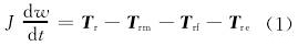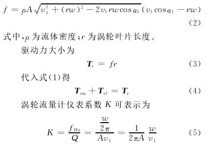 渦輪在轉(zhuǎn)動(dòng)時(shí)所受的力矩大致可分:流體對(duì)渦輪的推動(dòng)力矩Tr,機(jī)械摩擦力矩Trm,流體對(duì)渦輪產(chǎn)生的流動(dòng)阻力矩Trf和電磁阻力矩Tre。渦輪運(yùn)動(dòng)方程可以表示為