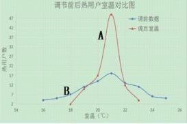 我公司在該小區(qū)管網(wǎng)改造前,在不同單元不同樓層分別安裝100臺室溫采集器。智能蒸汽流量計調前數(shù)據(jù)采集于2017~2018年供熱期,調后數(shù)據(jù)采集于2018~2019年供熱期。經(jīng)過兩個采暖期,共有96臺室溫采集器可以正常提供數(shù)據(jù)。數(shù)據(jù)分析結果見圖3所示。