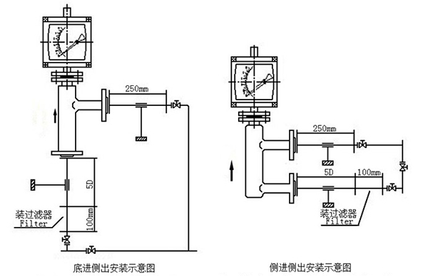 4.若介質(zhì)中含有固體雜質(zhì),應(yīng)在閥門和直管段間加裝過濾器;若介質(zhì)中含有鐵磁物質(zhì),應(yīng)在金屬浮子流量計的上游安裝磁過濾器。