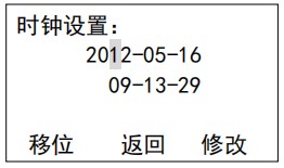 設(shè)置界面 17:時鐘設(shè)置,校準(zhǔn)當(dāng)前運行的日期和時間,此參數(shù)出廠時已校準(zhǔn),時鐘設(shè)置影響數(shù)據(jù)計算,在運行前務(wù)必設(shè)置成當(dāng)前日期,如錯誤將造成記錄保存混亂。
