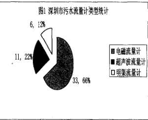 另外,還有水頭污水處理廠、葵涌污水處理廠、光明污水處理廠在建。根據(jù)上表可以看出,深圳市污水處理廠排污流量計的類型主要是3種,分布比例如下圖1所示。主要以電磁流量計為主,為33臺,占到超過一半